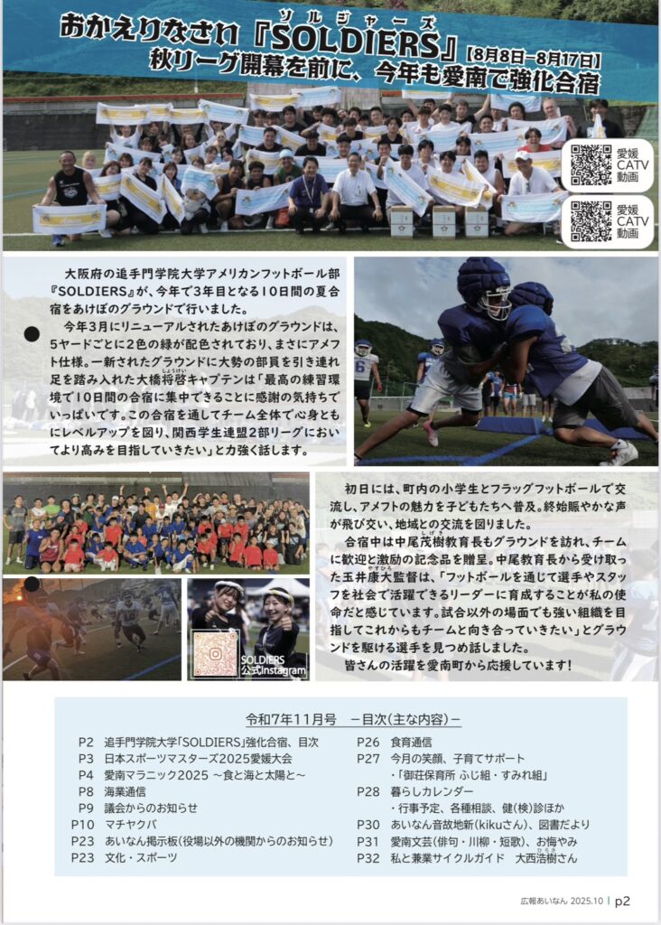 私たちが夏合宿でお世話になりました、愛媛県愛南町の「あけぼの荘」にて行った活動が、愛南町誌10月号に掲載されました!