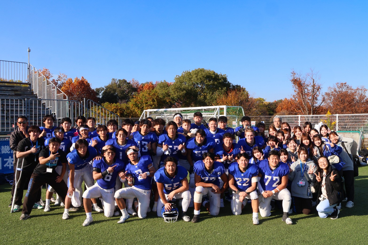 今年度は「2部Aクラス」を目標に掲げ、チーム一丸となってアメリカンフットボールに真摯に向き合い、日々の練習に取り組んでまいりました。しかし、2部のレベルはまだまだ高く、厳しい戦いが続きました。そのような中でも、試合を重ねるごとにチームの結束力は高まり、最後まで全員で戦い抜くことができた結果、最終的には2部5位という成績を残すことができました。